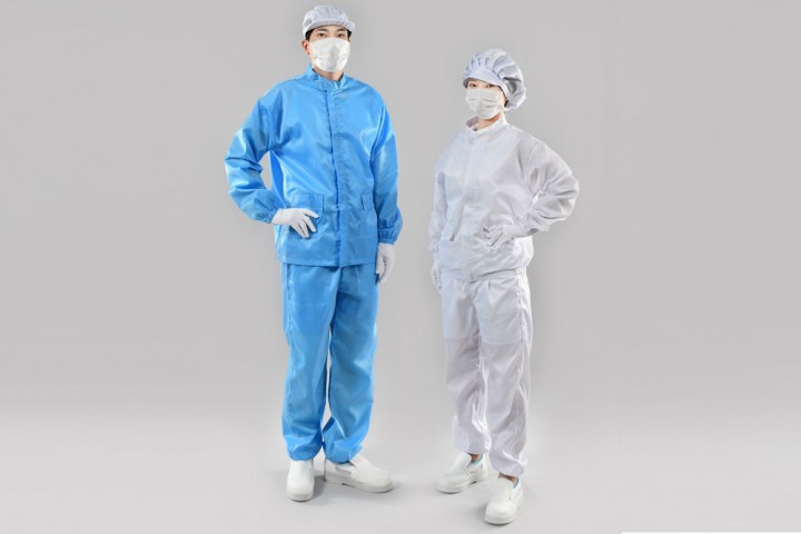 투피스는 Class 1,000 이상의 Cleanroom에서 착용하는 상하 분리형의 작업복으로써 원피스에 비해 개방 부위가 많아 청정도는 떨어지나 착용감이 우수하여 작업성이 편리합니다.
