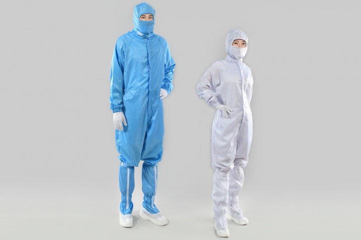 One piece is a top and bottom one-piece work clothes worn in Class 10 ~ 1,000 Cleanroom and requires functions such as preventing particle generation, antistatic, moisture permeability, half-life, and fit.